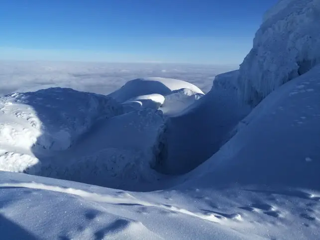 Day for training skills on the Cayambe Glacier at 5000m. this give you more acclimatization to safe the summit attempt at Cayambe peak. Cayambe Glaciers School day. Wake up at 7 am for breakfast. We continue adjusting to altitude acclimatization. We go on the glacier at 8h30 AM. And engage in the moderate glacier section a good activity. Where well be familiarize ourselves with the various climbing techniques, equipment work for climbing.