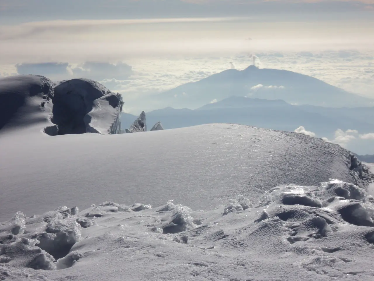 Wake up at midnight. Breakfast and equipment check-up. An early morning start will enable us to reach the summit by 8:00 A.M. The route is complex, offering spectacular views of Cotopaxi, Cayambe and Chimborazo. The glacier on Antisana is very active, and the complex configuration will require us to include a combination of snow and ice techniques for intermediate terrain.