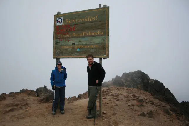 We take our acclimatization ascent on the Guagua Pichincha or Ruco Pichincha volcano at 4800m.(13,773ft) We driving from Quito for one half hour to the Cruz Loma area at 3900m(12,792ft) Quito is nestled on the slopes of this active volcano.