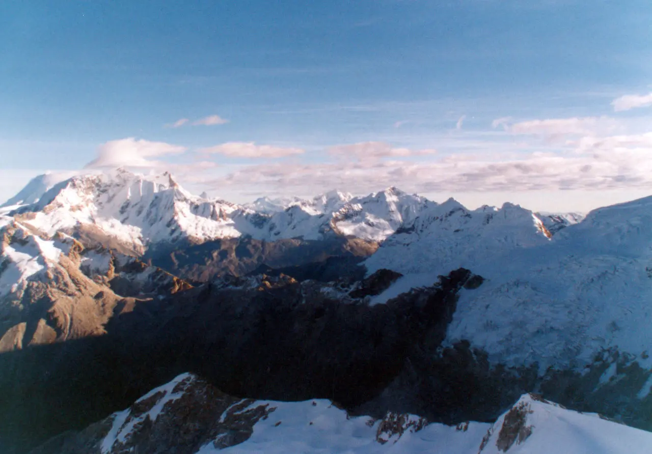 We wake up early. Relatively straightforward glacier travel leads to the saddle between Chopakalki and the fascinating east ridge of Huascaran Sur. From the saddle glacier slopes interspersed with short steep sections (up to 60 degrees), we get to the wildly corniced and fluted summit at 20,842feet (6354m). This is an great day! We then return to the Moraine Camp. (There is one day reserved for the summit climb if we have bad weather.)