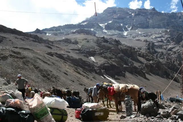 Hot drinks will be provided regularly as well as water. In the afternoon the expedition leader will prepare a list of what to take. At the same time, equipment will be prepared for the local porters to carry, which ensures you will only have to carry your own personal equipment, with all the group’s stores and food being taken by the porters who support the team. We’ll spend the night at base camp Plaza de Mulas. (B./BL./D)